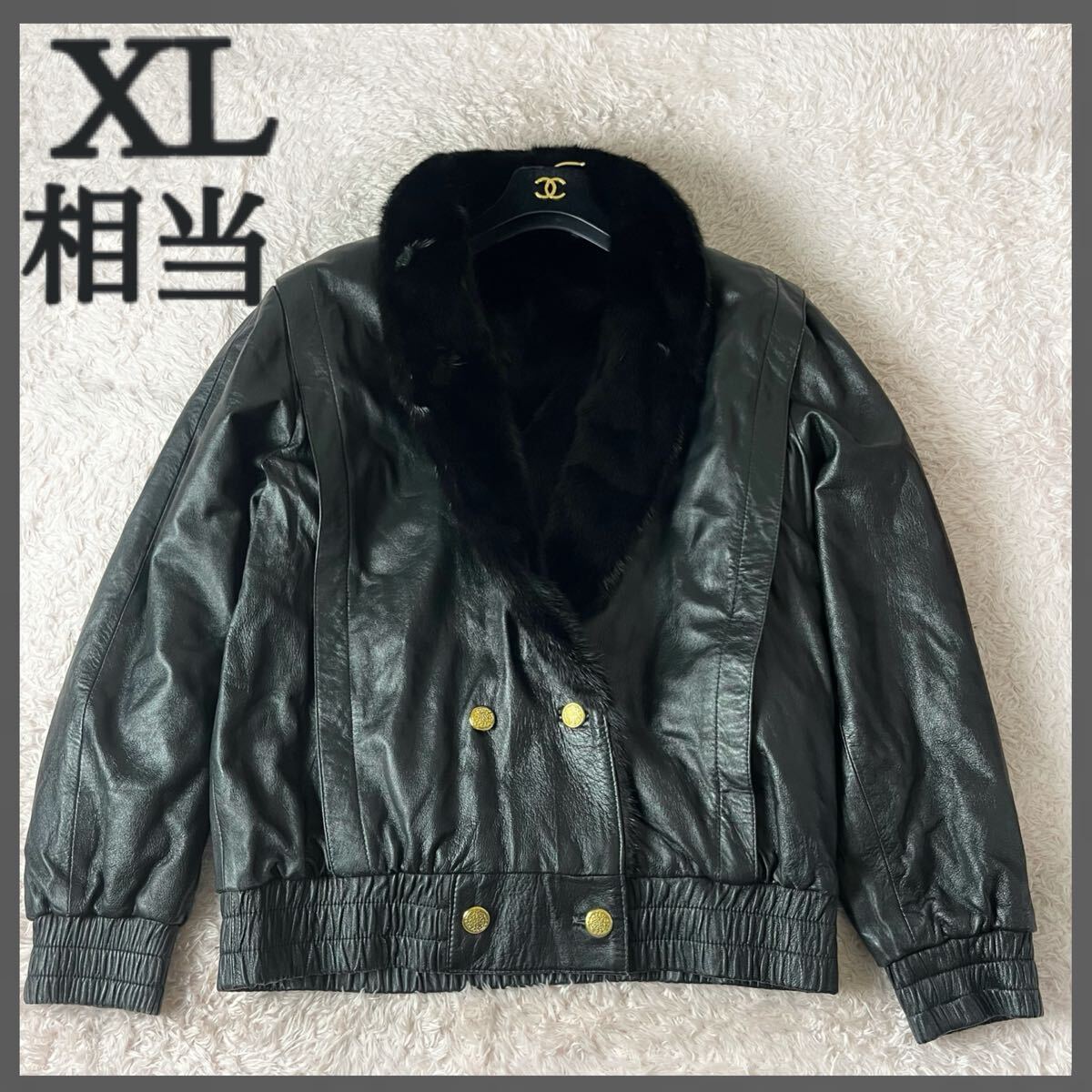 > ヴィンテージ ミンク ファー リアルファー 毛皮 コート レザージャケット リバーシブル ダブル ライダース 本革 金ボタン 黒 ブラック XL