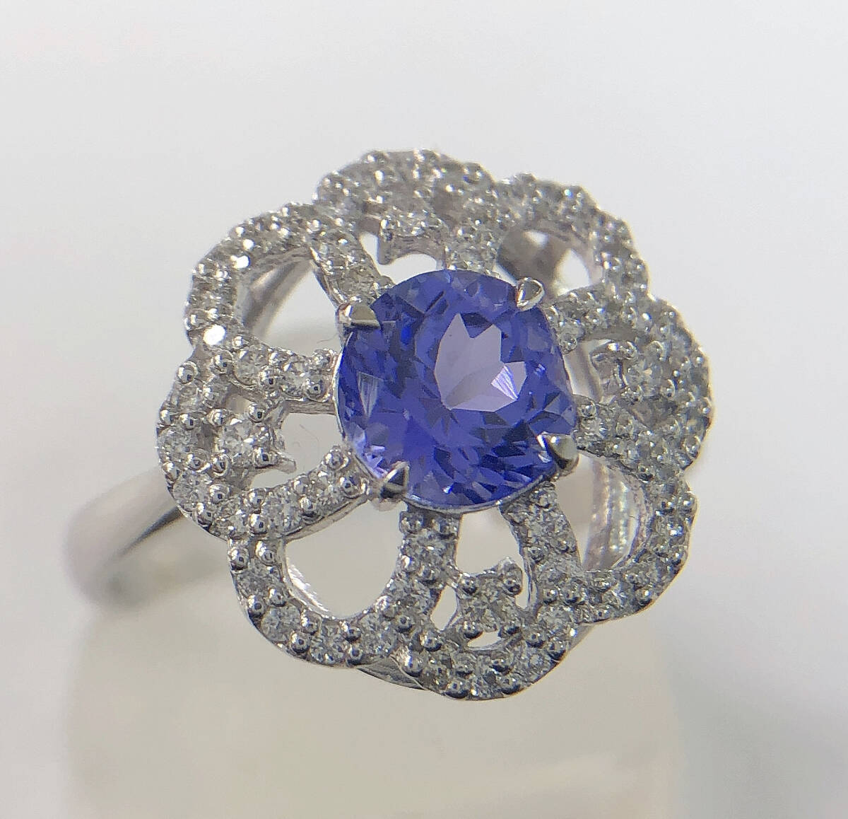> 新品未使用品 花モチーフ PT900 天然タンザナイト1.01ct 天然ダイヤモンド0.27ct リング 指輪 約12.5号 約4.2g
