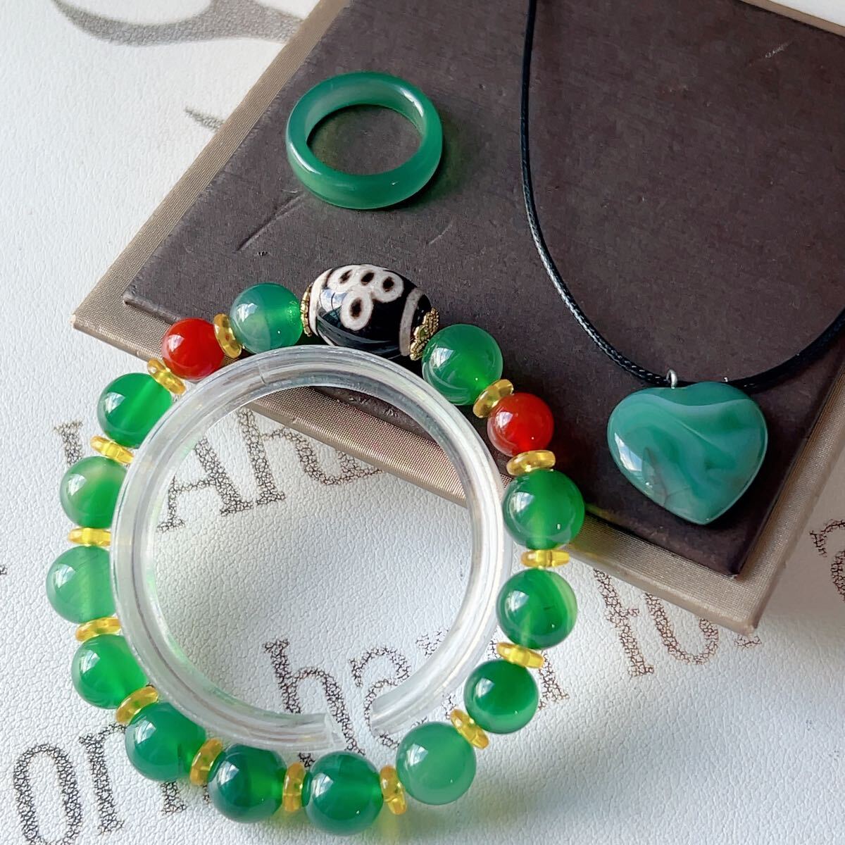 - ◇3点セット◇緑瑪瑙◇ネックレス◇ペンダント+リング+ブレスレット◇天然石◇パワーストーン◇巾着袋付き◇プレゼントにも 033S122912