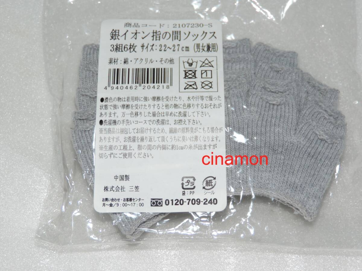 - 靴下の三笠 銀イオン 指の間 ソックス 3組6枚 22~27㎝ 男女兼用(靴下/5本指ソックス/五本指ソックス/五本指靴下/足指カバー/汗ムレ対策