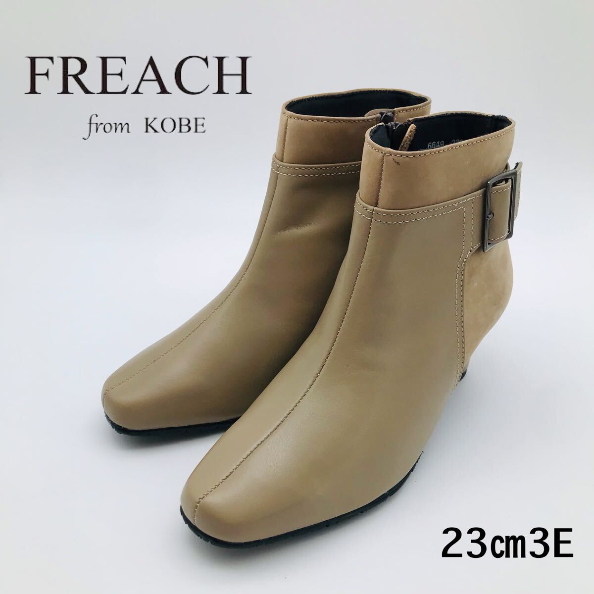 - 【新品】FREACH ショートブーツ 23cm 3E バックル 本革 滑り止め