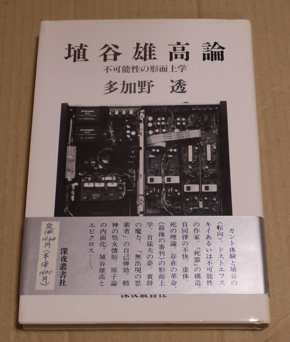 - 「埴谷雄高論 不可能性の形而上学」(多加野透) 1987年初版 深夜叢書社 四六版 帯付き