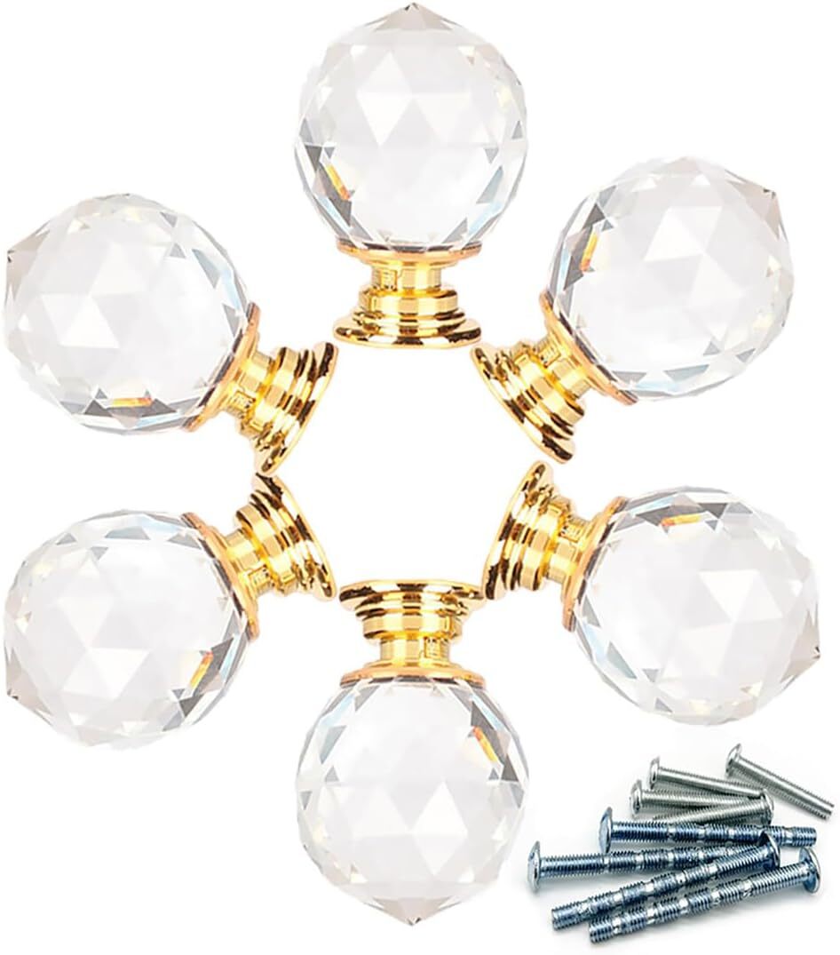 - UULU 6枚入 丸型 透明 引き出しノブ ツマミ つまみ クリスタル ガラス ハンドル タンスノブ キャビネット 戸棚引きハンドル (ゴールデン)