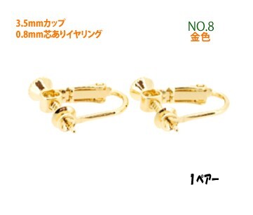 > アクセサリーパーツ 金具 3.5mmカップ 0.8mm芯あり イヤリング NO8 16KG金メッキ 金色 ゴールドカラー 1ペアー入り