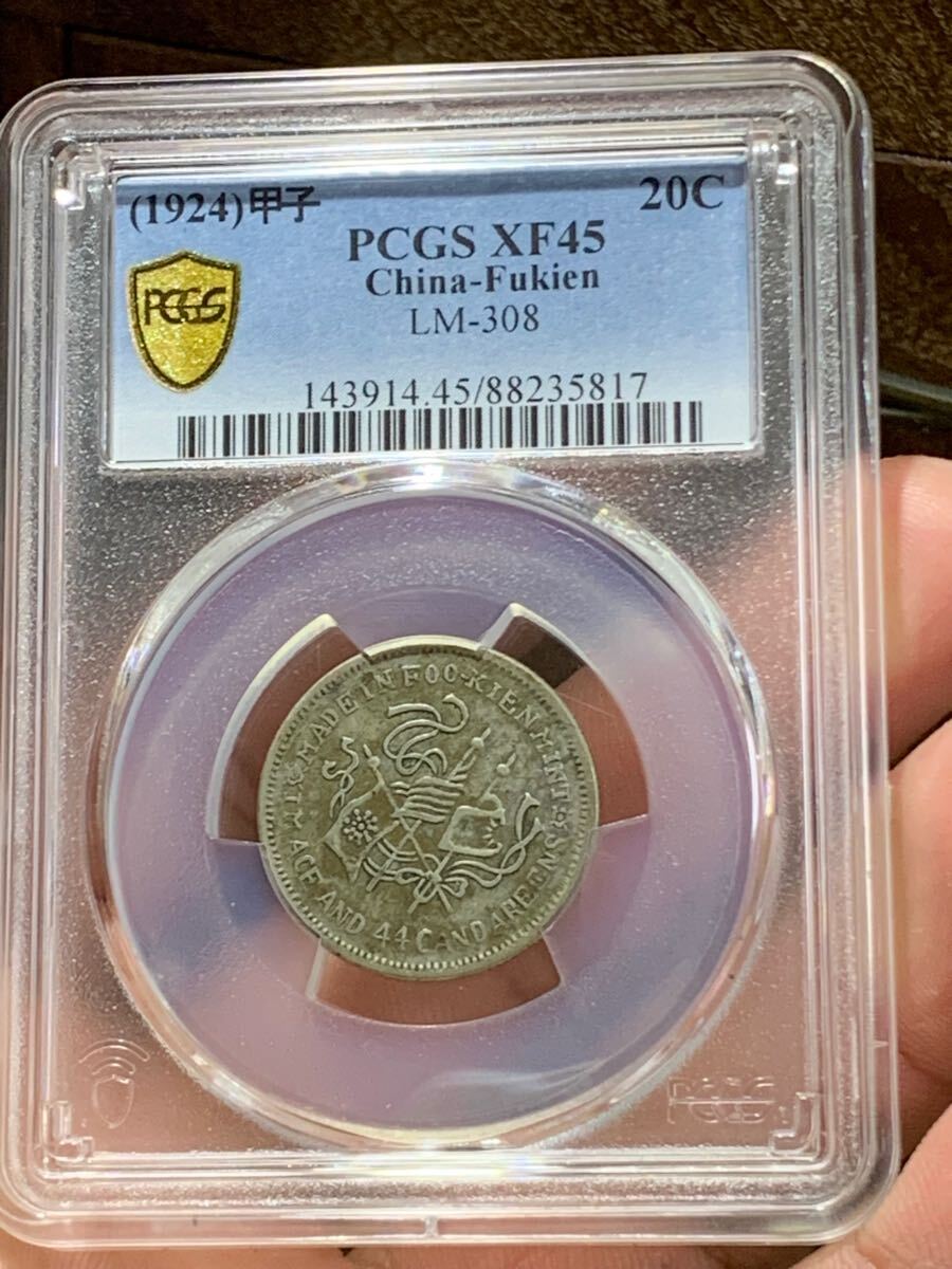 - 中国古銭銀貨 福建銀幣廠造 民國甲子 庫平一銭四分四釐 PCGS鑑定済みXF45 古銭 銀貨 中国銀幣 貴重 希少 本物保証 収蔵品放出 中国古銭