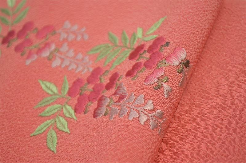 - ▲まいど家 X4-04-99 藤の花模様 刺繍 ちりめん 洗える半衿 ポリエステル 未使用品