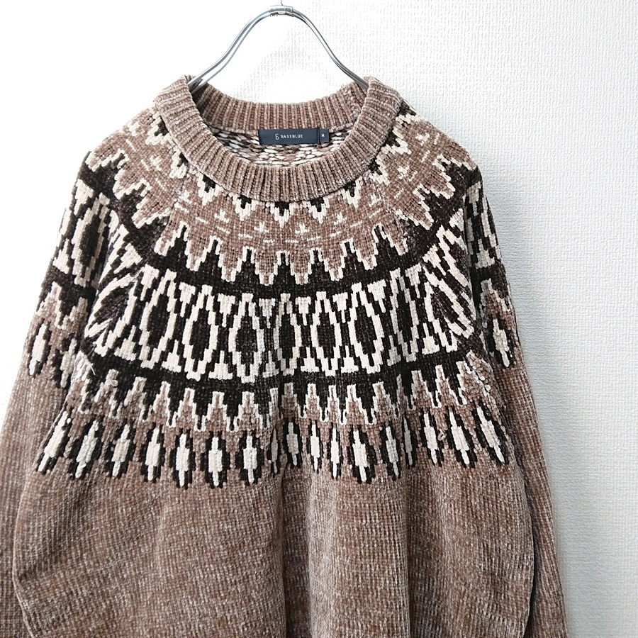 - RAGEBLUE レイジブルー ノルディック クルーネック ニット ポリエステル ブラウン sizeM 美品