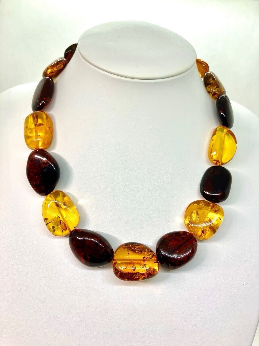 - 【新品】リトアニア産琥珀ネックレス*ミックスアンバー*アンバー*こはく*コハク*貴重*グラデーション*黄褐色*天然石*大ぶり