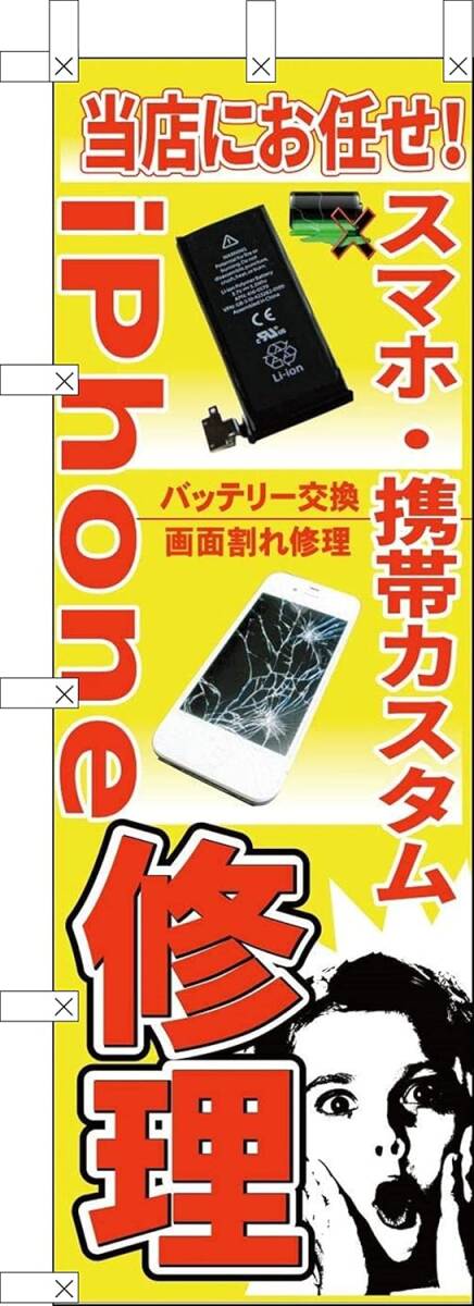 - のぼり旗「アイフォン修理 のぼり スマホ修理 幟旗 アイフォン修理 新黄 スマートフォン修理 iPhone repair」何枚でも送料360円!