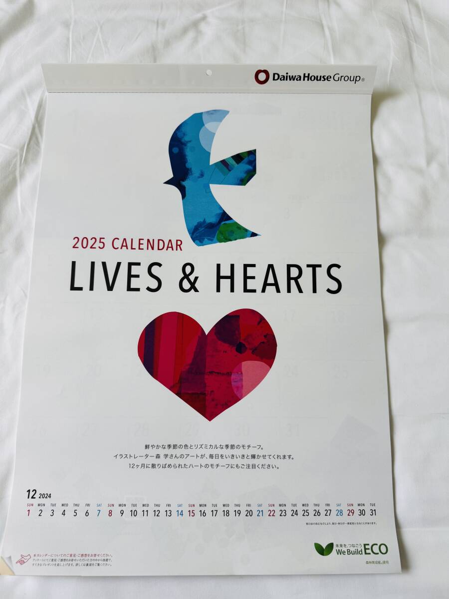 > 2025年 令和7年 Daiwa House 大和ハウス 壁掛け カレンダー Lives &Hearts イラストレーター 森学 アート 書き込み欄