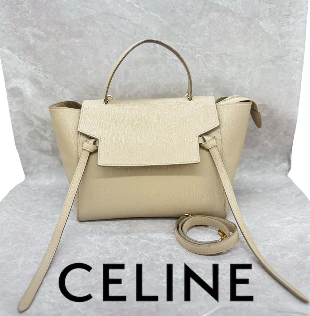 - 美品 セリーヌ ベルトバッグ ミニ レザー 2WAY ハンド ショルダーバッグ