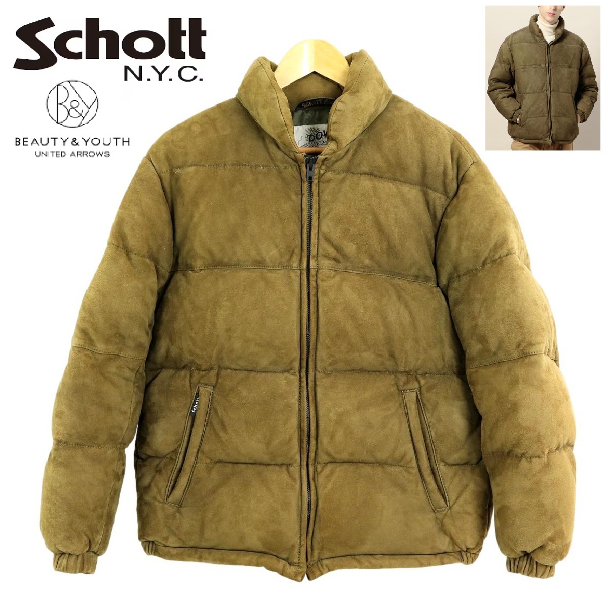 > 【B3241】【美品】【定価107,800円】SCHOTT×BEAUTY&YOUTH ショット ビューティーアンドユース レザージャケット ダウンジャケット 別注