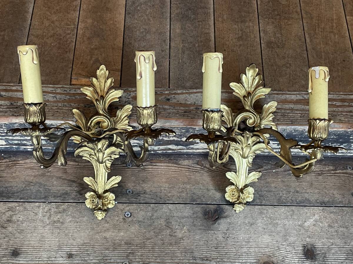 > 9-1. 2個セット!フランスアンティーク ランプ ブラケット ブロンズ 2灯 キャンドル 照明 ライト ウォール 蚤の市 店舗 什器 カフェ 美容室
