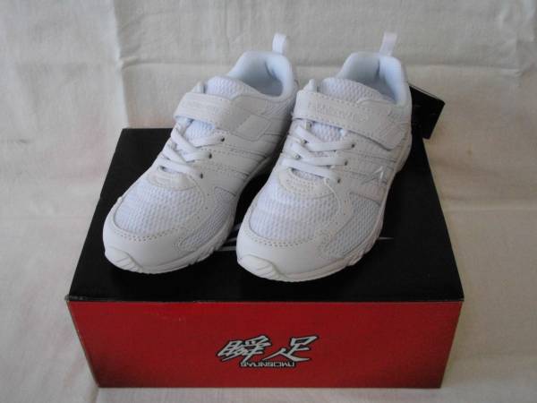 - 瞬足 094 23.5cm ホワイト 男女ジュニア兼用 ひも付き マジックタイプ スニーカー 白 通学に、校内ばきに スポーツに