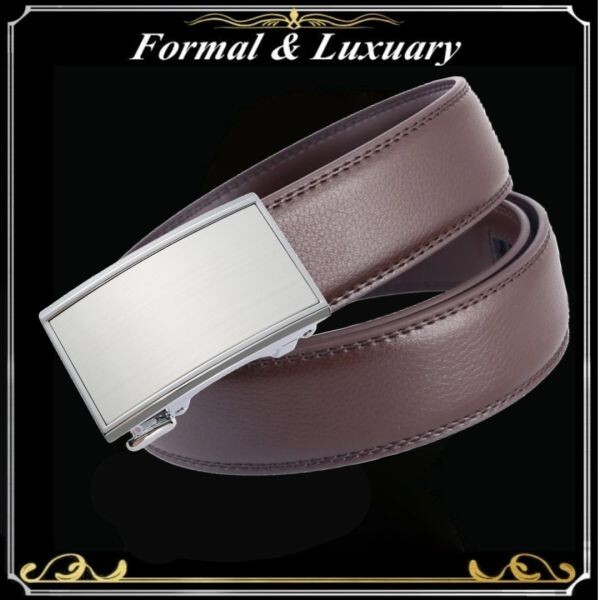 > ベルト j48【茶】折りたたみ発送 ダーク 穴なし 無段階調整ベルト ゴルフベルト 人気 オートロック メンズ 革 ビジネス カジュアル