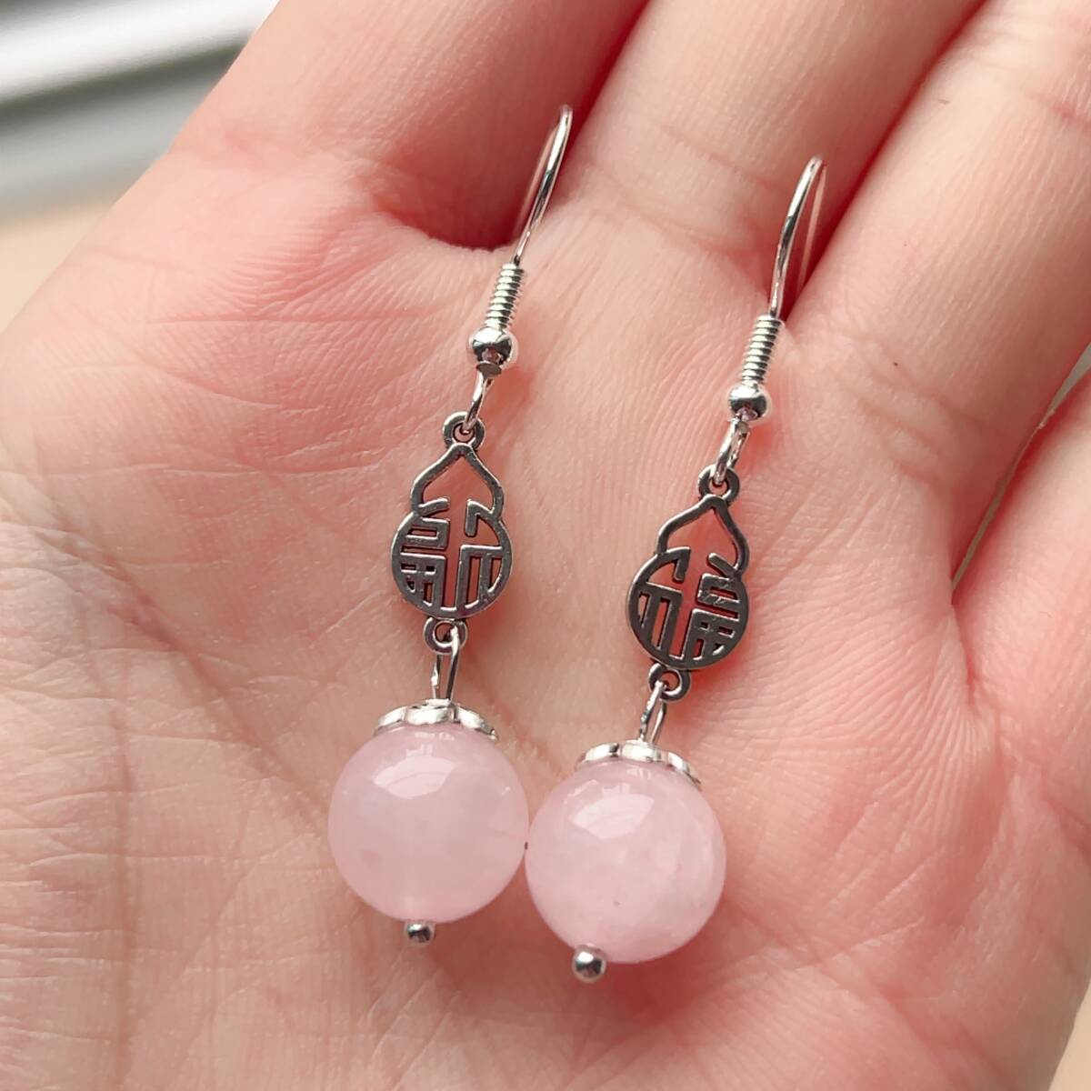 > ◇ローズクォーツ(紅水晶)◇ピアス◇レディースイヤリング◇天然石◇パワーストーン◇巾着袋付き◇プレゼントにも034R166