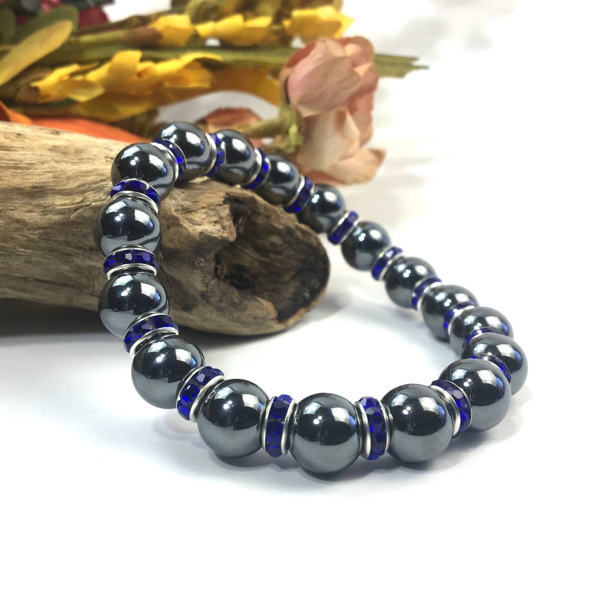 > ヘマタイト パワーストーン ブレスレット 天然石ブレス 10mm メンズ・レディース (ロンデル:D.ブルー) 開運 浄化 数珠ブレス