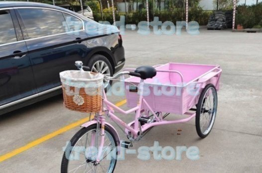 - 三輪車 24インチ 三輪自転車 大人用貨物 載荷重150kg ダブルブレーキ 貨物バスケット後カゴ付 ピンク 三輪車 大容量