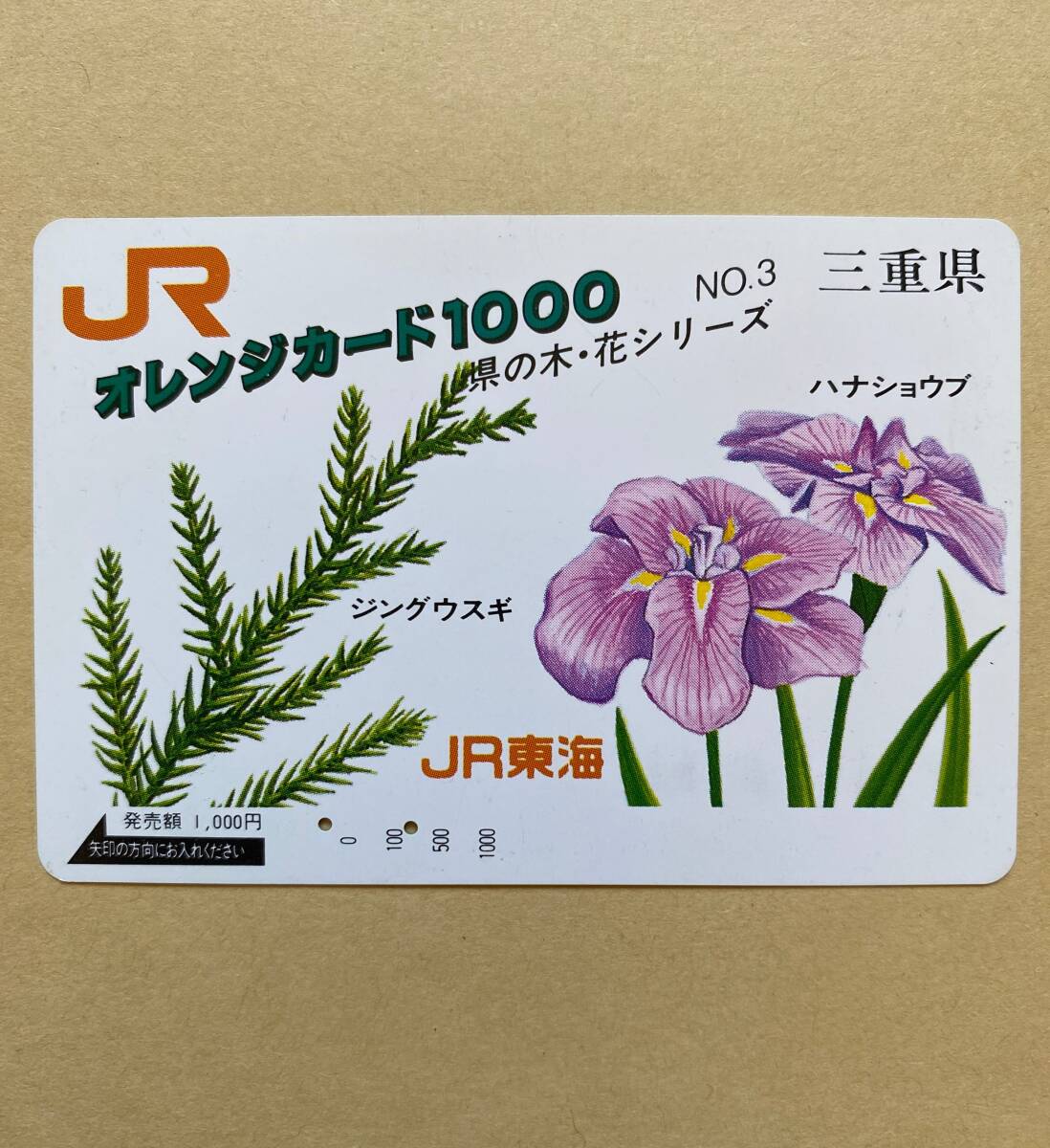 > 【使用済】 花オレンジカード JR東海 県の木・花シリーズ №3 三重県 ジングウスギ ハナショウブ