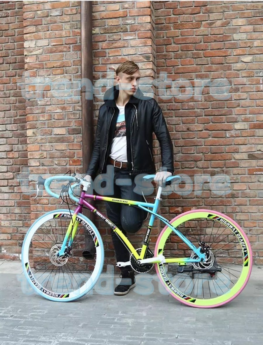 > 美品ロードバイク 700C カラー ソリッドタイヤ 24段変速 初心者 街乗り 可変速自転車スチールフレーム適用身長165-185cm 通勤 通学