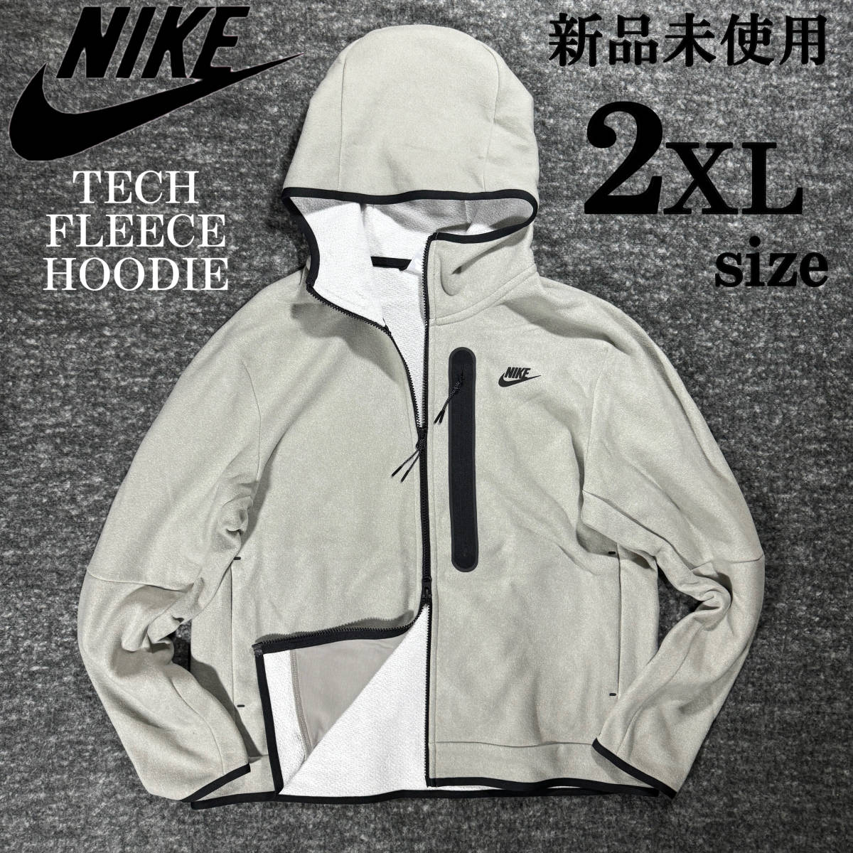 - 新品 ナイキ テックフリース パーカー 定価1.8万 2XLsize グレー NIKE TECHFLEECE HOODIE ジップポケット 保温 高級 黒 刺繍 フード 人気