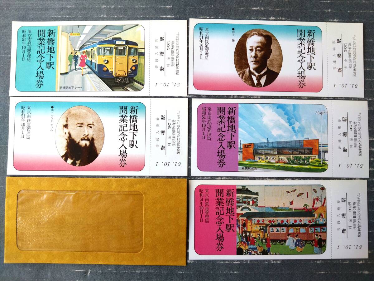 - 未使用【新橋地下駅開業記念入場券(5枚セット)】東京駅(昭和51年)