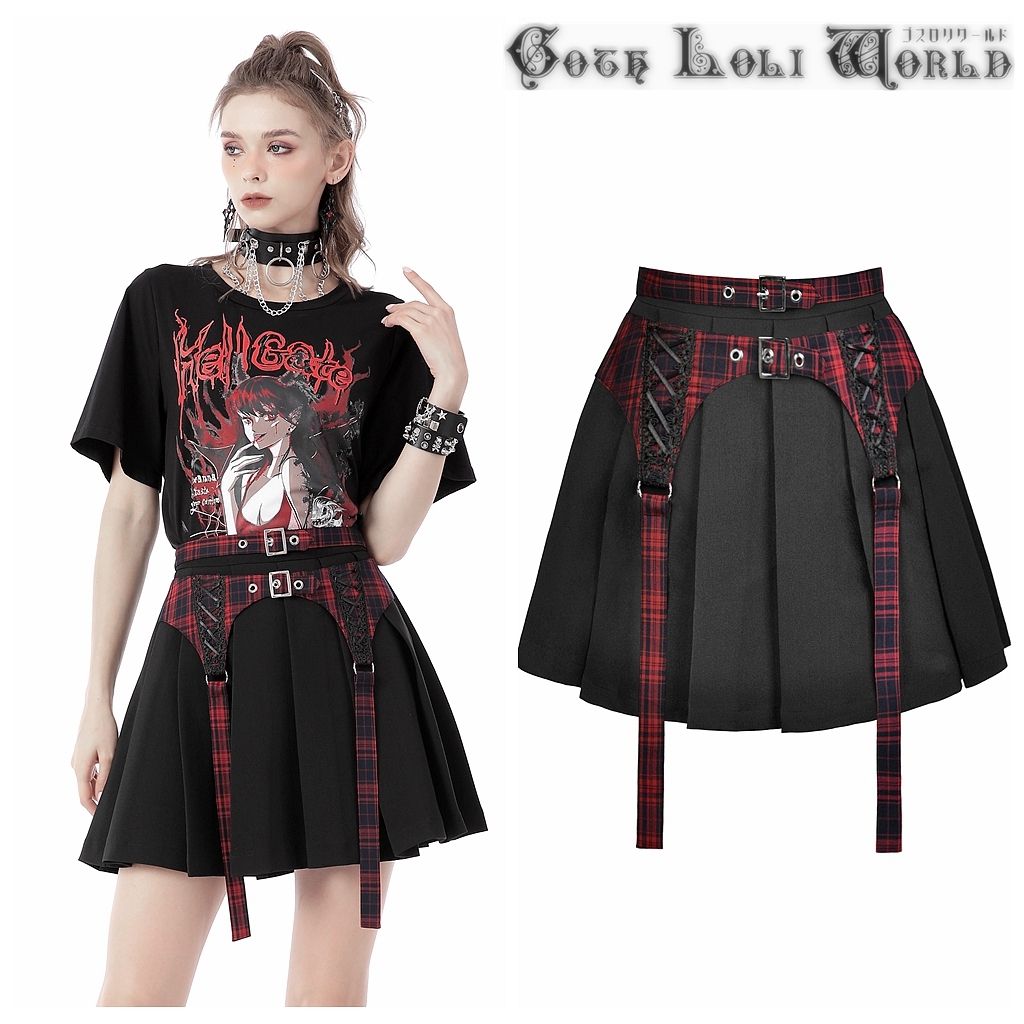 > KW239-M チェック柄ダブルベルトプリーツ ミニスカート ゴスロリワールド ゴシック パンク ロック ロリィタ ビジュアル系 V系