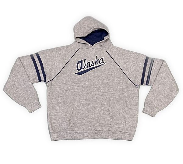 > 70's 80's 米国製 スポーツウェア sportswear スウェット パーカ フーディ カレッジ アラスカ alaska グレー ネイビー XL [la-1156]