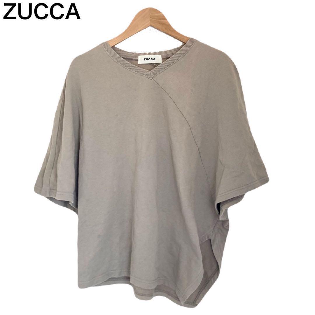 - ズッカ Tシャツ 半袖 ベージュ レディース 無地 スリッド アシンメトリー M