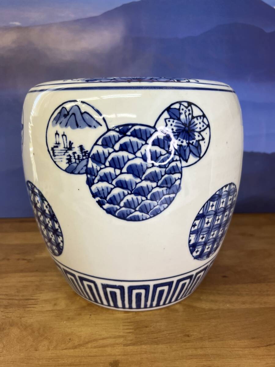 - 深火鉢 【水槽 金魚鉢 丸紋】メダカ ブーム 観賞用 陶器 植木鉢カバー 水鉢 魚缶 人気 染付 睡蓮鉢 陶磁器