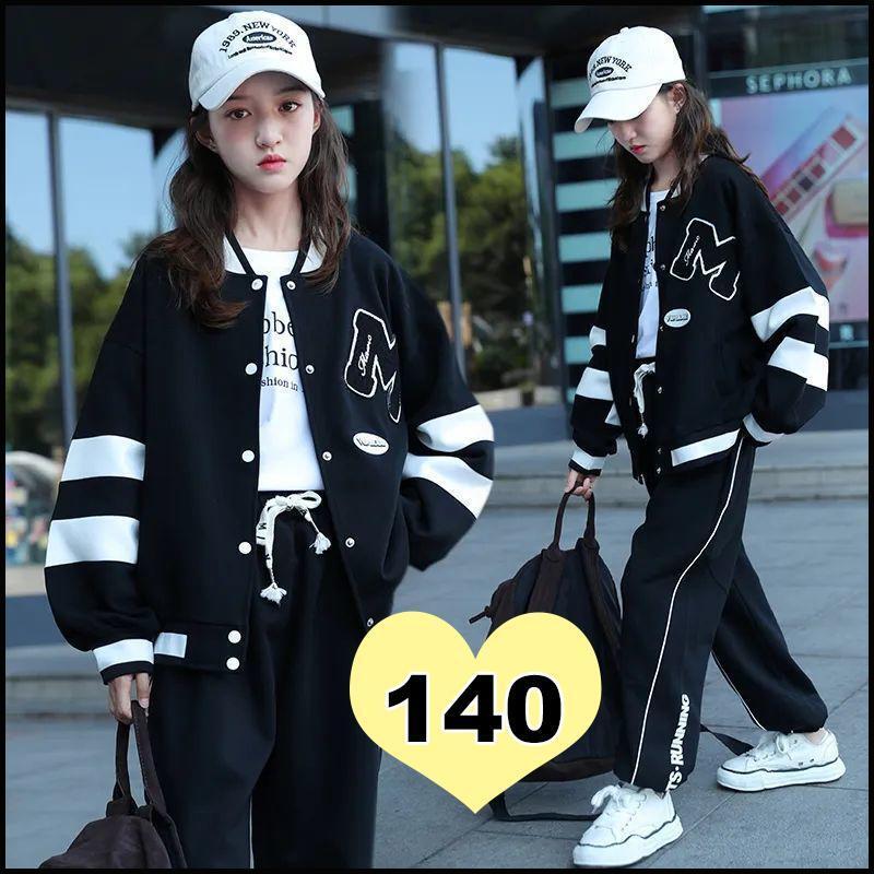 > ジャージ 新品 セットアップ ブラック 140 ダンス 長袖 子供 セット キッズ ダンス かっこいい オシャレ 韓国 運動着 モノクロ 黒 男女兼用