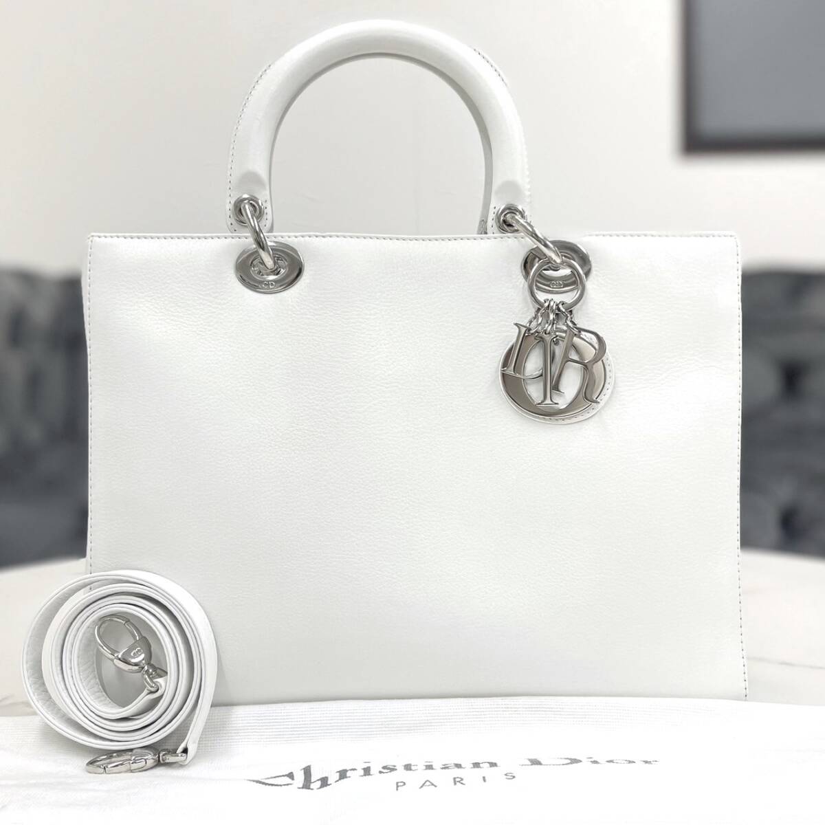 - 美品☆ レディディオール ラージ ラムスキン 2way ハンドバッグ 白