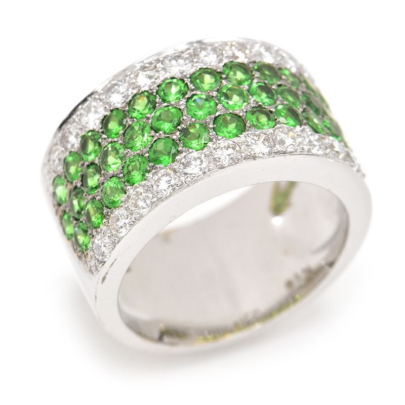 > 合計1.97ct天然グリーングロッシュラーガーネットリング 13号 K18WG 合計0.97ct天然ダイヤ 指輪 ホワイトゴールド 地金12.3g 中古 送料無料