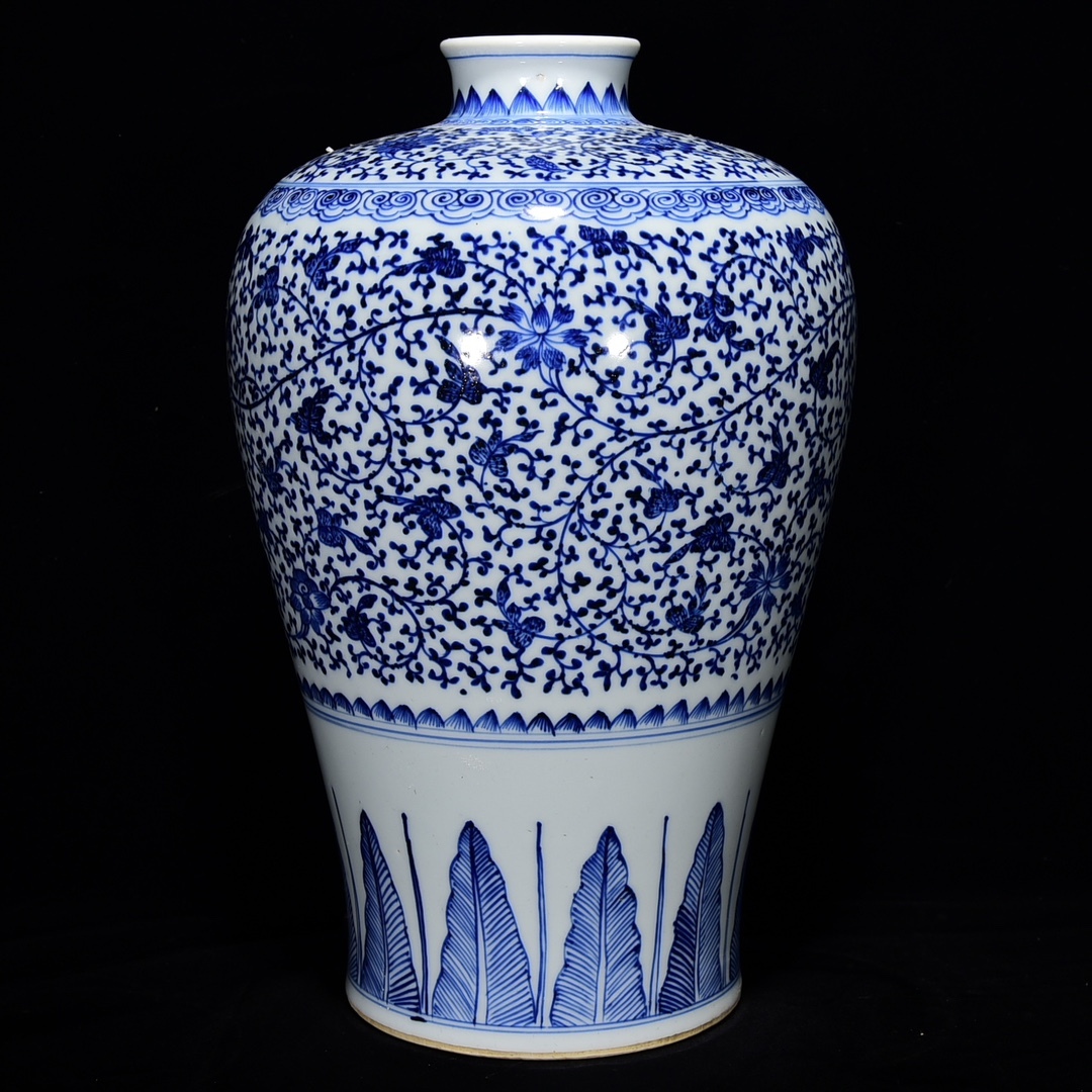 - ◆旧家蔵出◆古美術 中国古玩 大清康熙年製款 青花 纏枝蓮花 梅瓶 置物 擺件 古賞物 骨董 時代物 A06