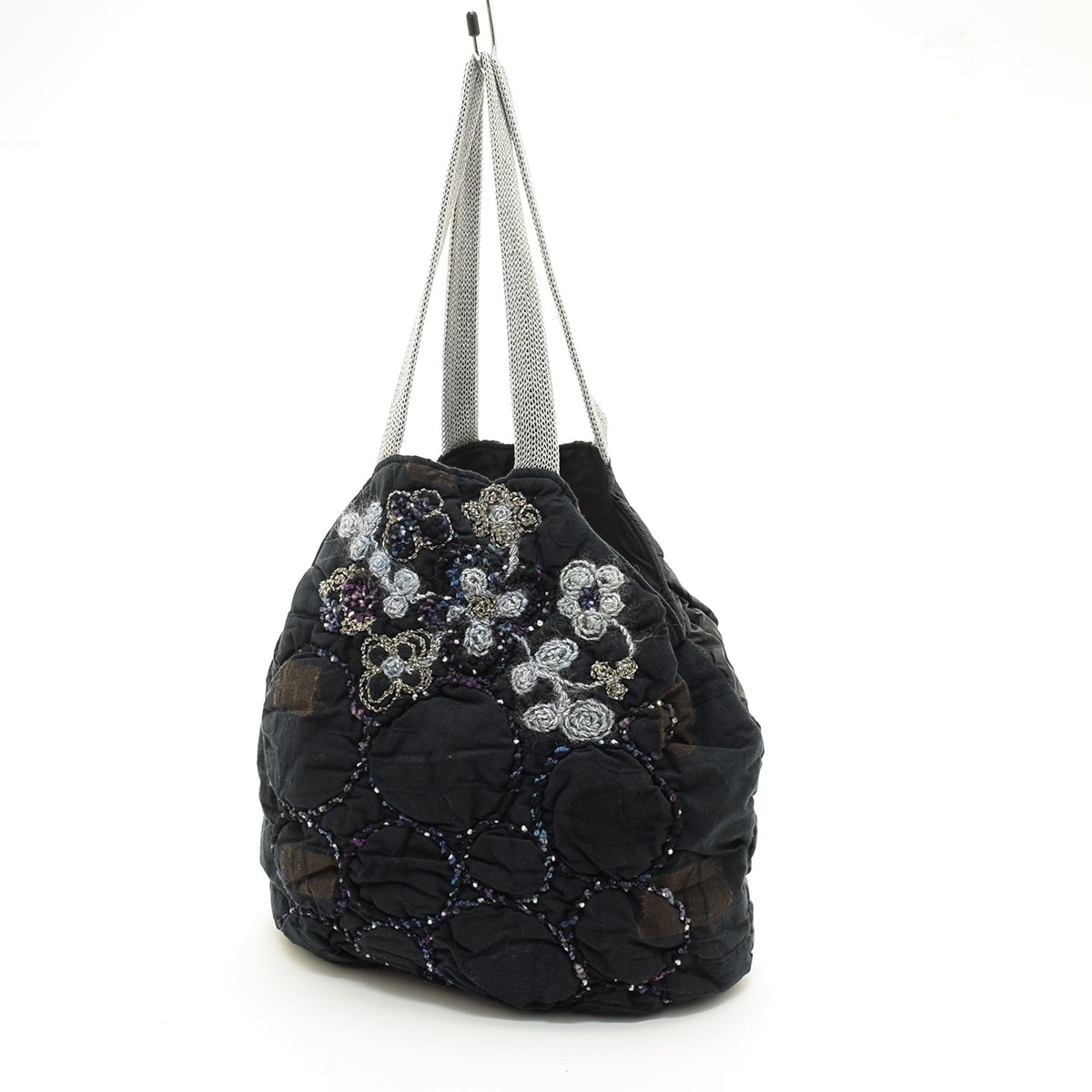 - □516919 M.&KYOKO エムアンドキョウコ 佐藤繊維 ○トートバッグ 装飾花柄キルティングバッグ レディース ブラック