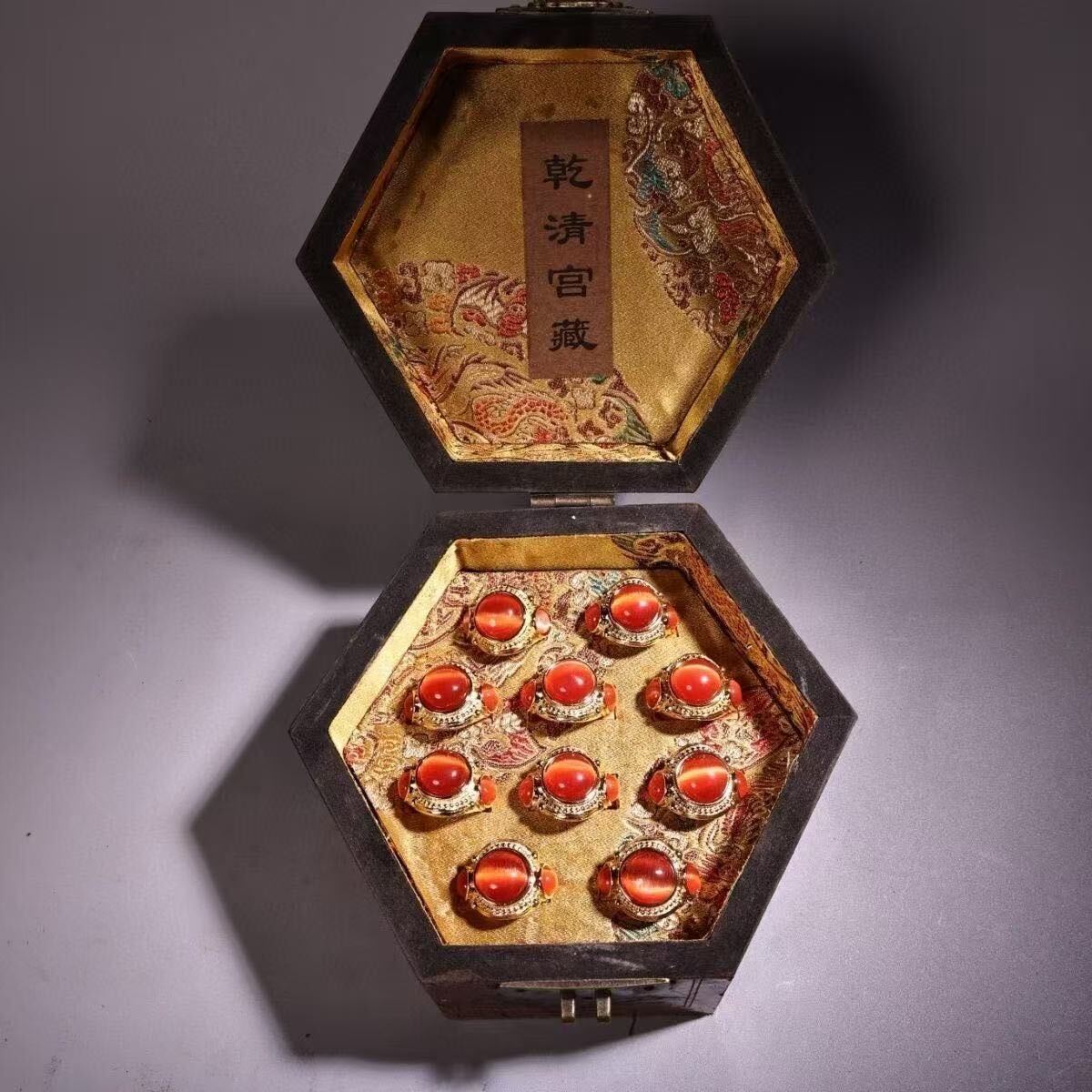 - 【伝世蔵品】中国古美術 古玩 唐物旧蔵 大清宮廷御蔵品 乾隆年製銘赤宝石指輪 紅宝石猫眼石極細工 古賞物 風水物 鎮宅 中国骨董品