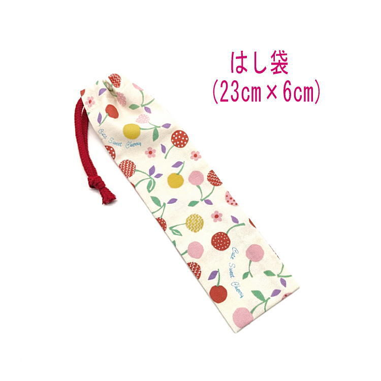 > はし袋・小(23cm×6cm)【北欧風 ポップチェリー柄 アイボリー】箸袋 箸入れ はし入れ マイ箸 箸ケース 細長巾着 さくらんぼ サクランボ