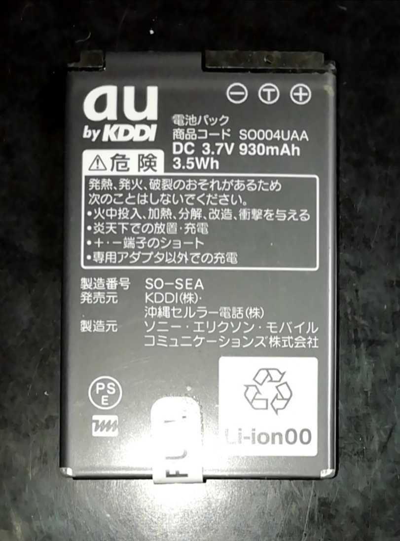 > 【中古・残り1個】au純正SO004UAA電池パックバッテリー【動作確認済】対応機種(参考)SO004/SO005/SO006/SO007/G11