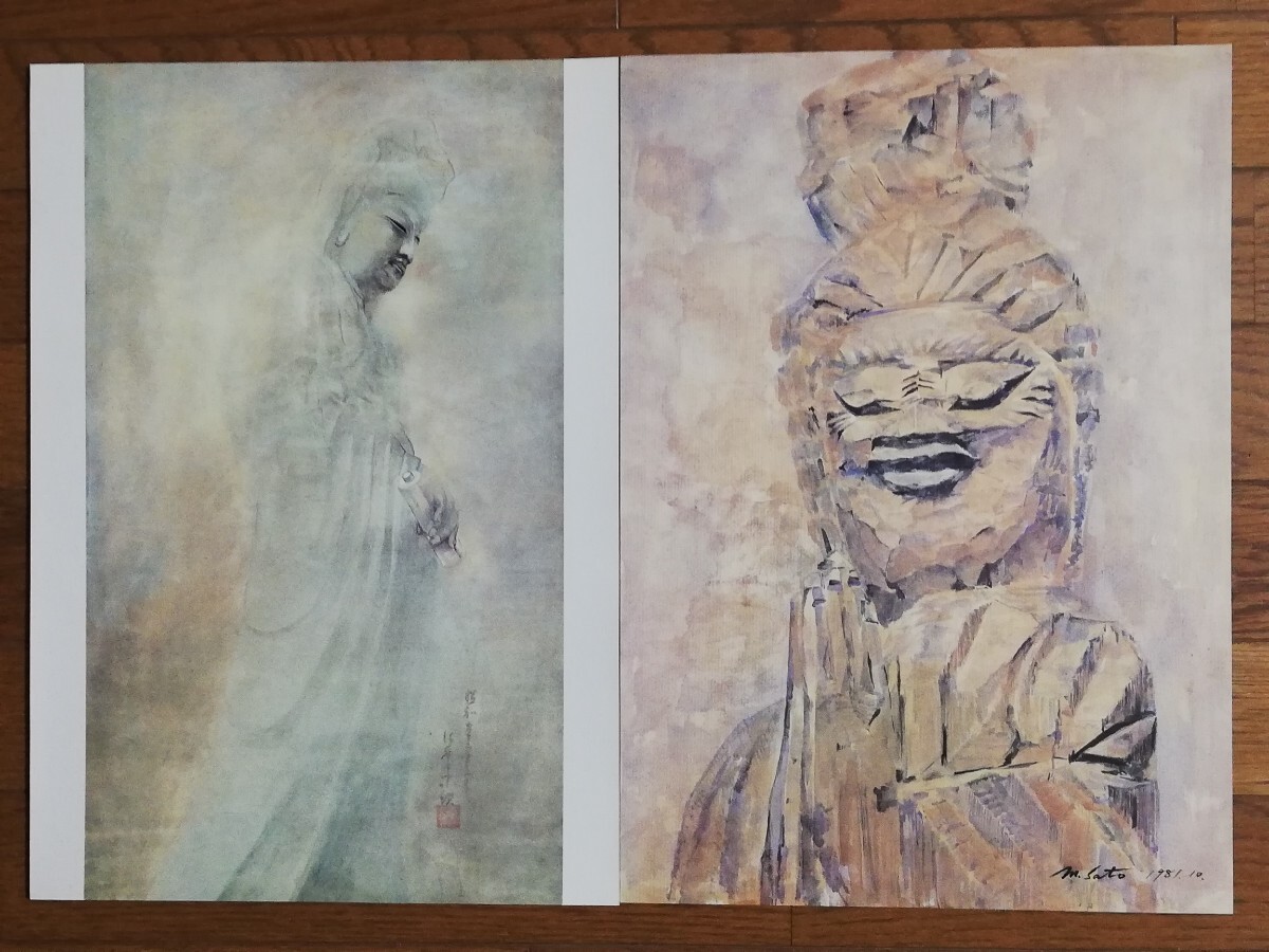 - 佐藤宗次 作品二点 白衣観音像 円空彫仏画 たとう紙 挨拶文あり 印刷物