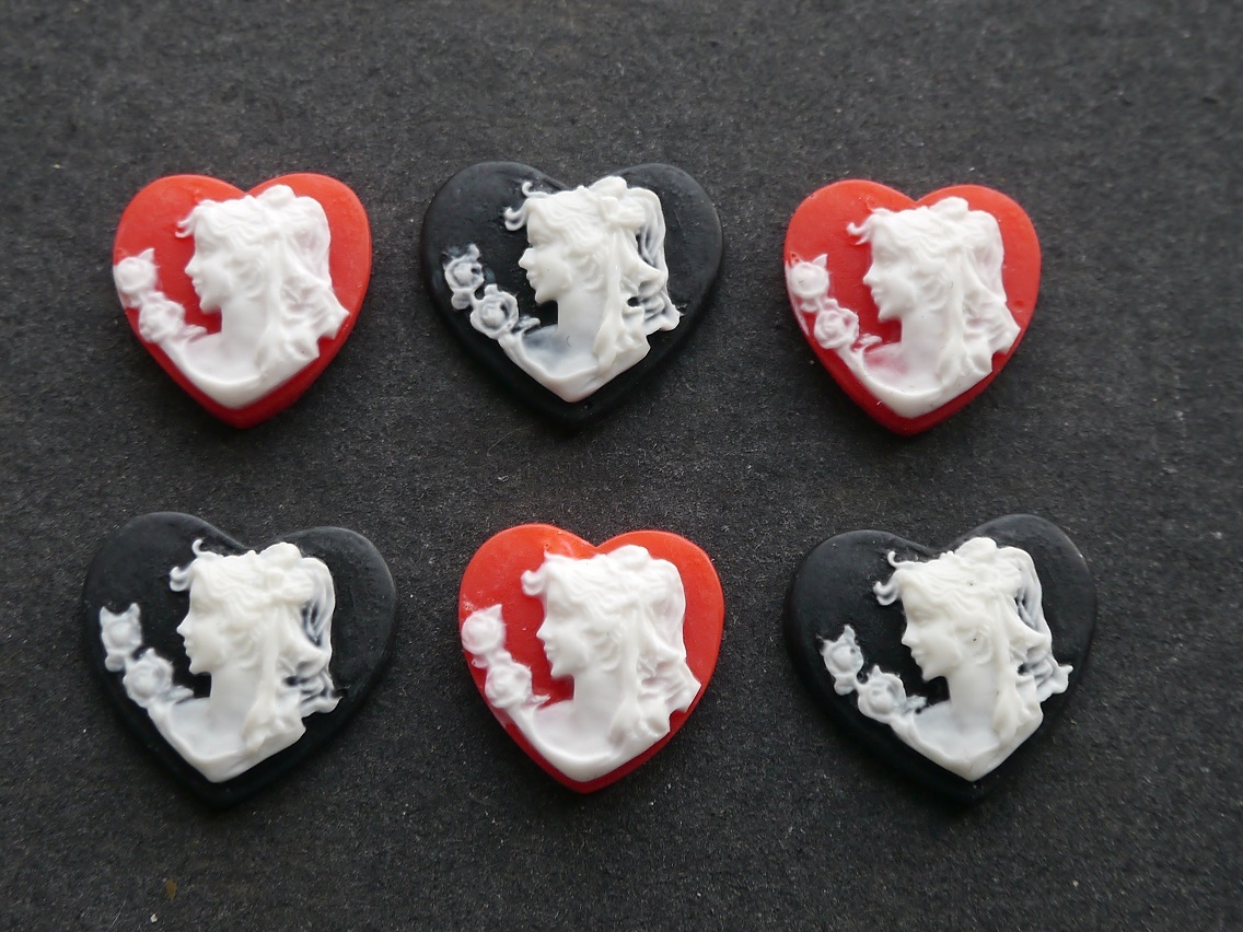 - プラパーツ 手芸・アクセサリーパーツ カメオ風 パーツ 6個セット デコパーツ ハート