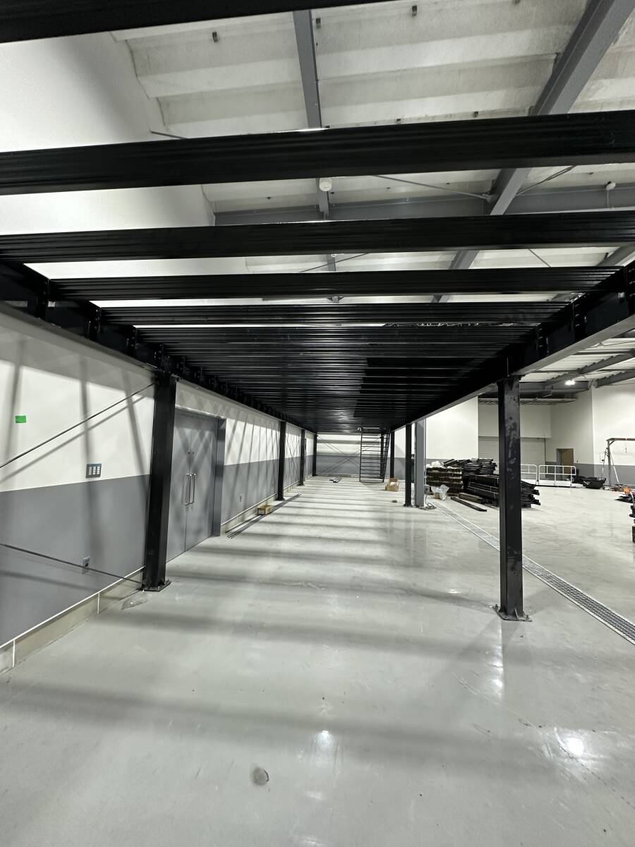 - 倉庫中2階 オーダーメイド可 幅20m 奥行5m 内高2.2m 柱の角鋼 梁のH鋼 荷重約500KG/㎡ ユニットハウス 工場中2階 中2F棚倉庫 建物で使用