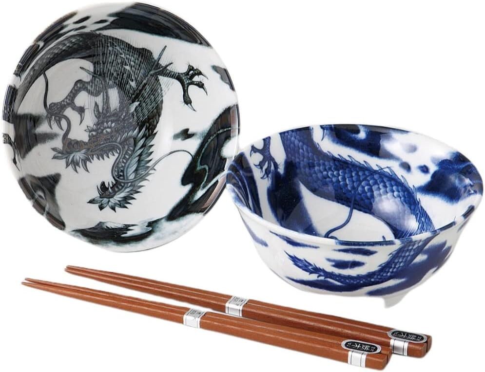 - 美濃焼! ☆龍・多用丼ペア(箸付き)☆ V4123-1 プレート 飯碗 茶漬 鉢 付 鉢 盛鉢 皿 向付 ボウル 盛皿 プラター