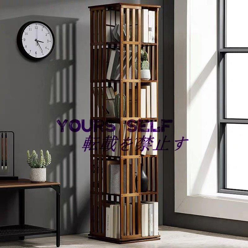 - 回転本棚 本棚 6段 幅37×奥行37×高さ178cm 大容量 回転ラック スリム 無垢材 組立簡単 収納ラック 本棚 コーナーの配置 コンパクト 茶色