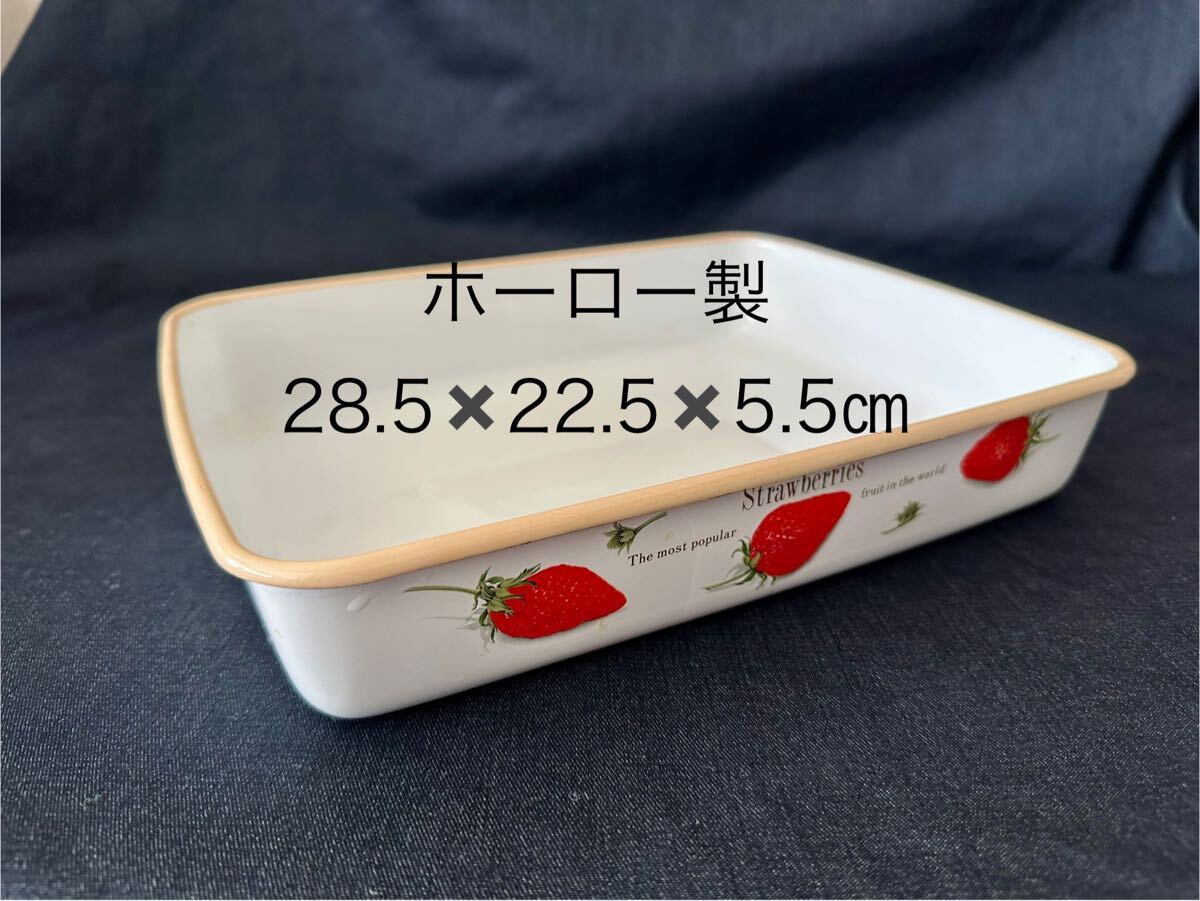 - いちご柄ホーロー製保存容器食器バッドスイーツ菓子作り撮影インテリアディスプレイ昭和レトロフリマ販売レア