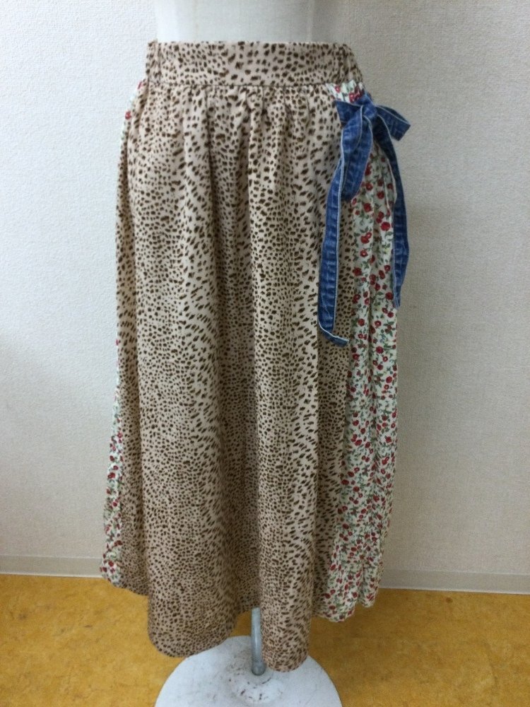 - RNA タグ付き未使用 アニマル柄や花柄生地切替スカート ウエストゴム サイズM