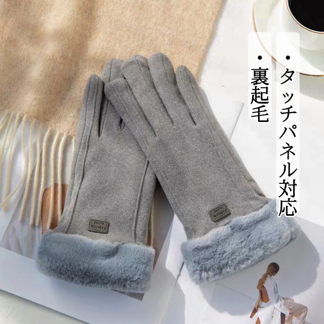 - 手袋 レディース グローブ 防寒 防風 保温グローブ スマホ対応 裏起毛 ボア 女性用 ふわふわ 暖かい おしゃれ シンプル 秋 冬用 グレー