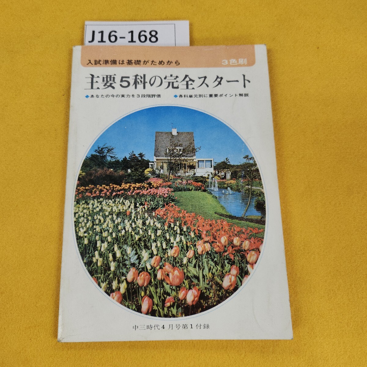 > J16-168 入試準備は基礎がためから 主要5科の完全スタート 3色刷 旺文社 中学時代 昭和44年4月号付録冊子のみ。日焼け傷汚れ折れあり。