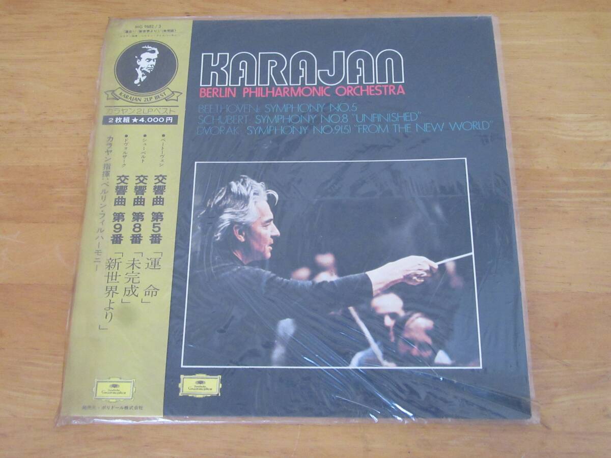 - ★帯付き★ベートーヴェン「運命」 シューベルト「未完成」 ドヴォルザーク「新世界より」★カラヤン指揮☆2枚組LP レコード☆