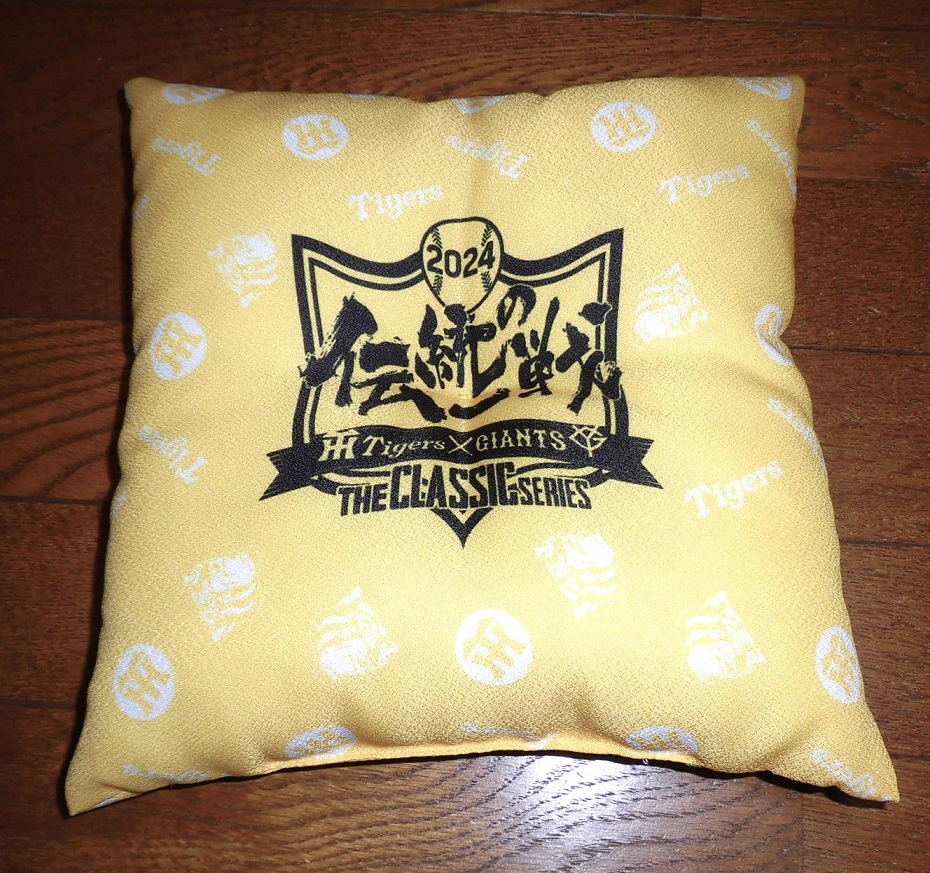 > 阪神タイガース 2024 伝統の一戦 クッション Tigers X GIANTS 正規品 非売品 YEL 260X260 未使用品/猛虎甲子園六甲おろし