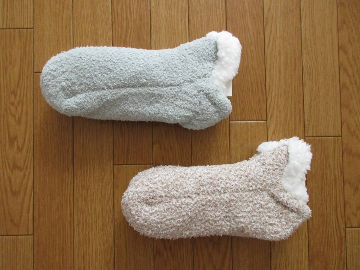 > LAFUKU ラフク マシュマロニット ルームシューズ 2足セット (ライトグリーン ブラウン) ふわもこ ボア ルームソックス 23~25㎝